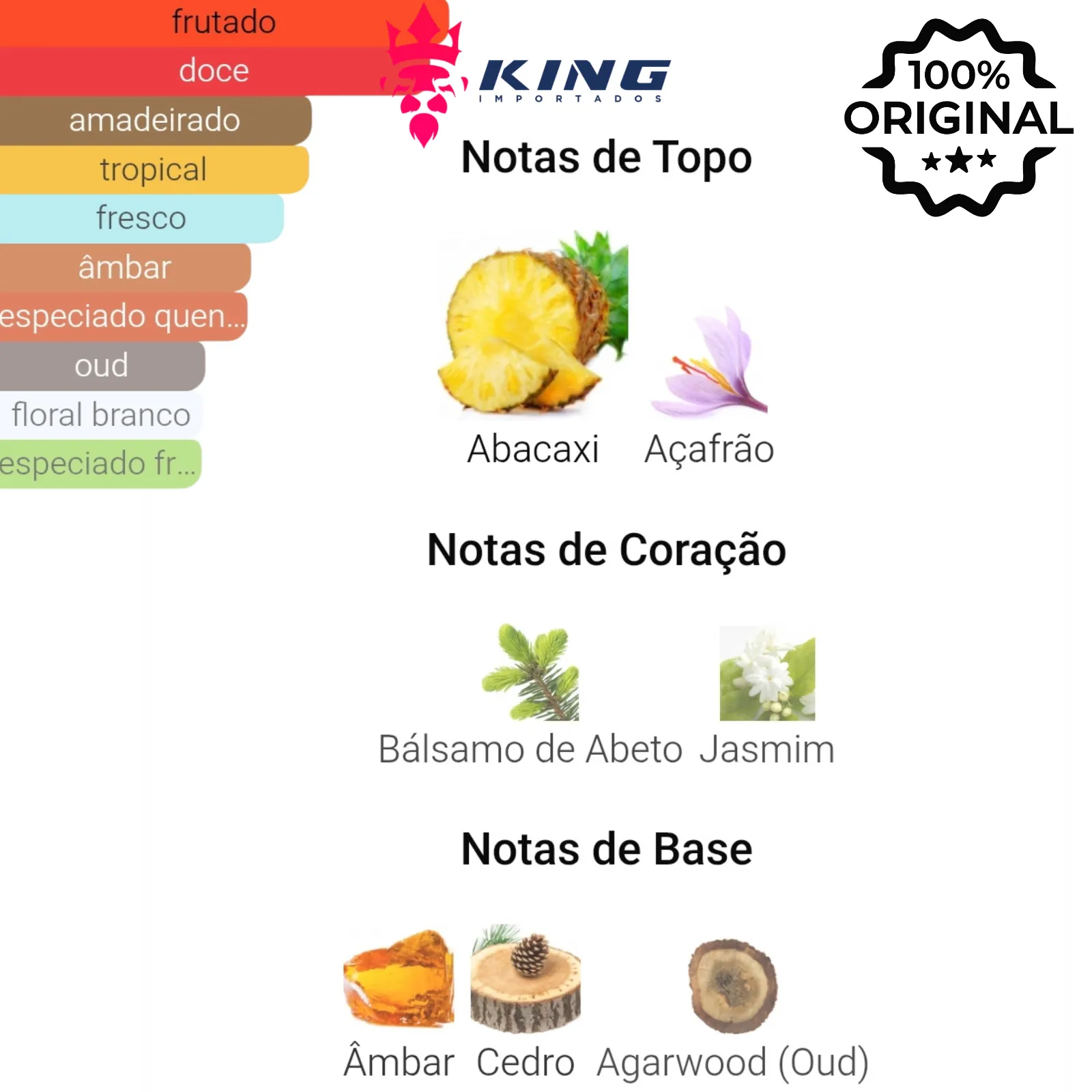 Principais Tipos de Aroma: Oriental, Amadeirado, Frutado, Doce, Resinoso, Floral.