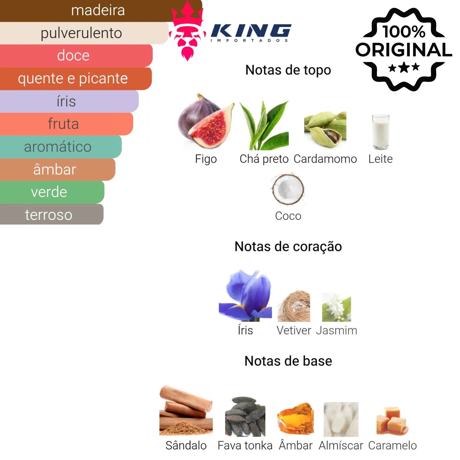 Notas de Base: Sândalo 🪵, Fava Tonka 🌰, Âmbar 🔥, Almíscar 🌿, Caramelo 🍯