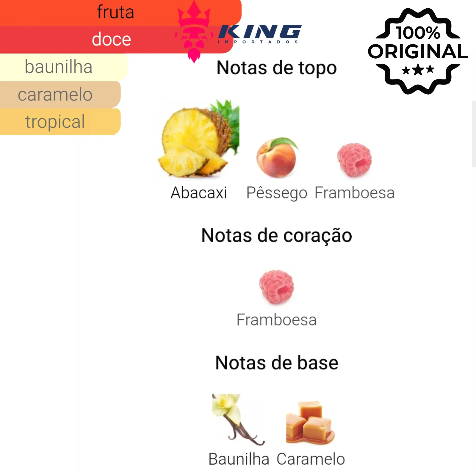 Notas de Base: Baunilha 🍦, Caramelo 🍮