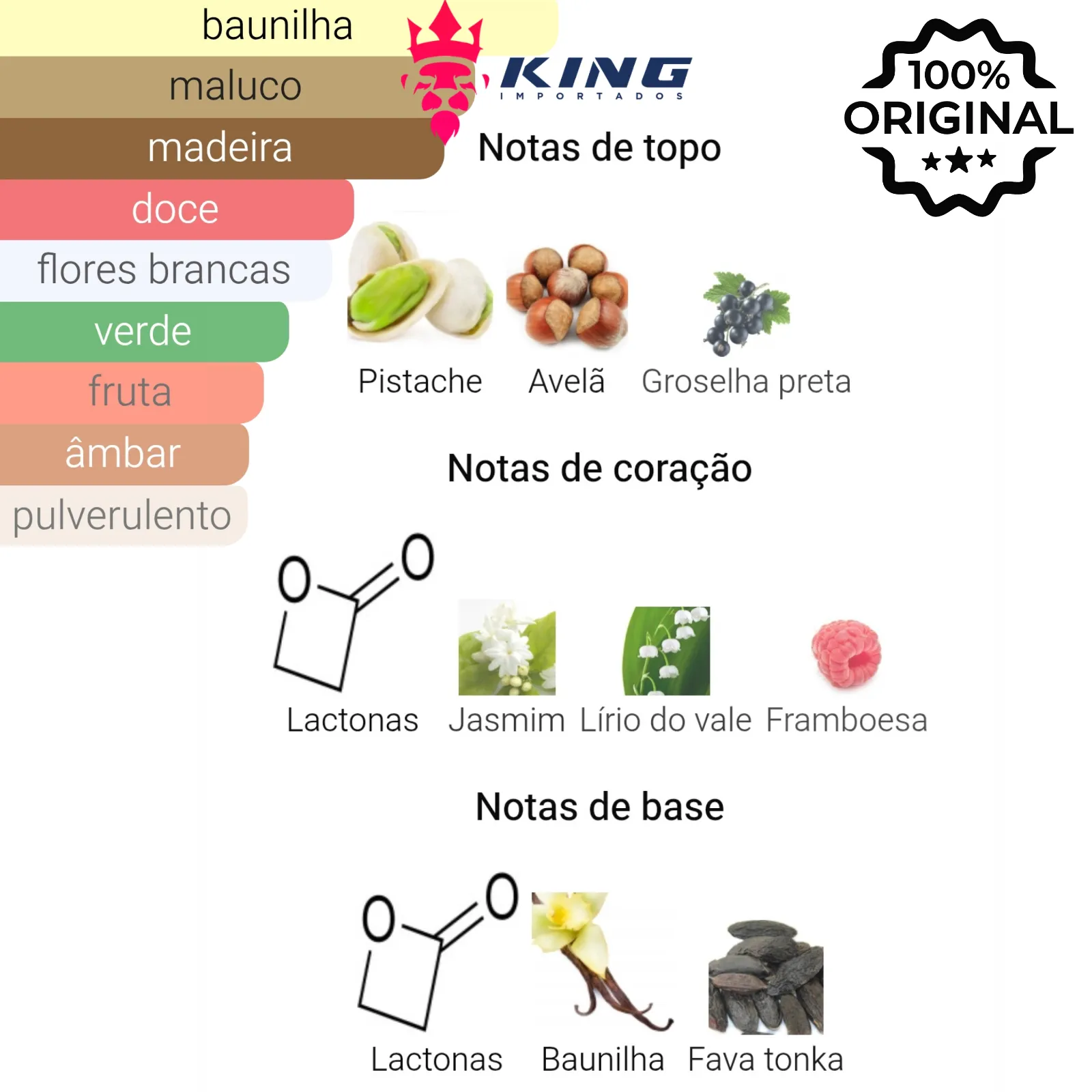 ❤️ Notas de Coração: 🥛 Lactona • 🌼 Jasmim • 🌿 Lírio-do-vale • 🍓 Framboesa