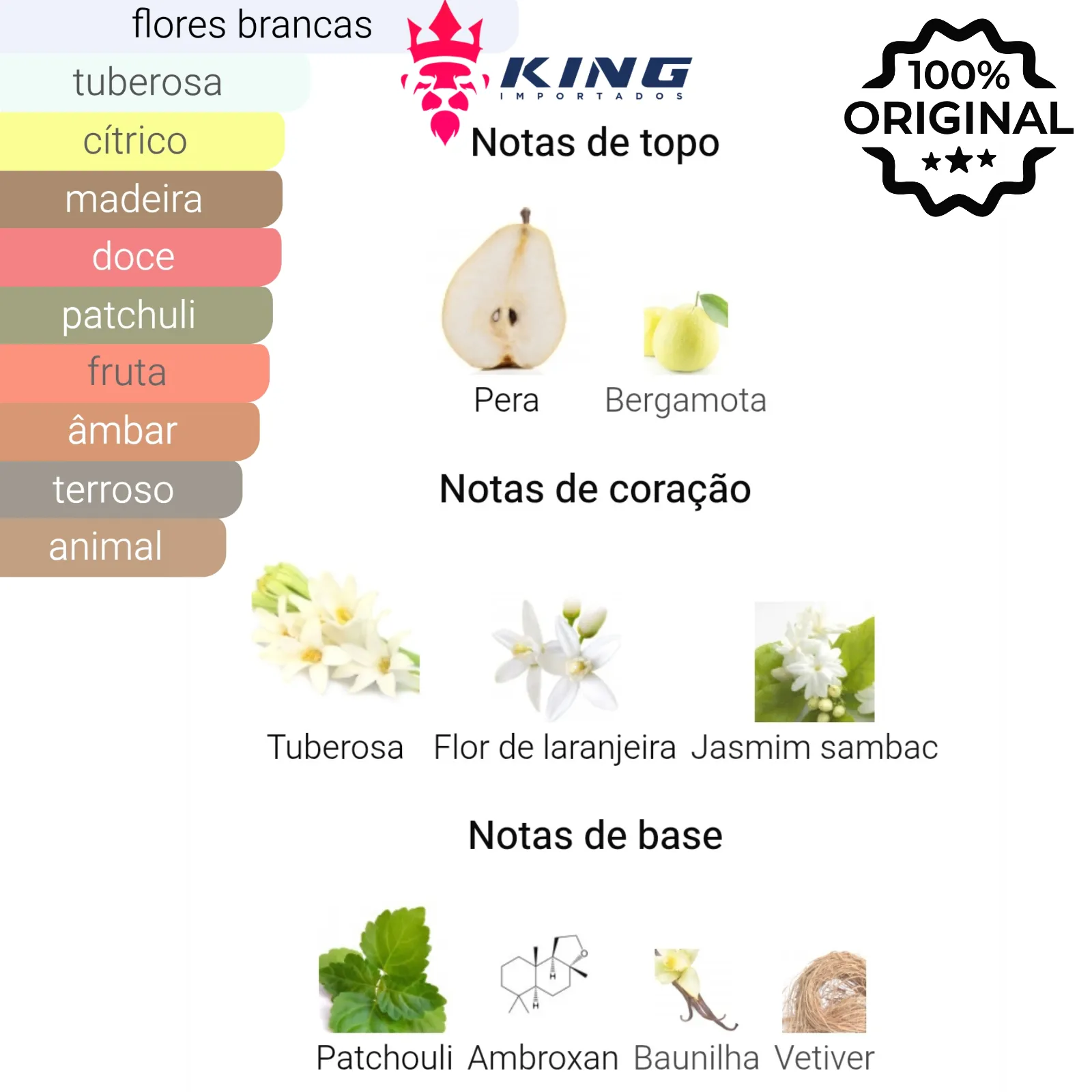 Notas de Coração: Tuberosa 🌸, Flor de Laranjeira 🍊, Jasmim Sambac 🌼