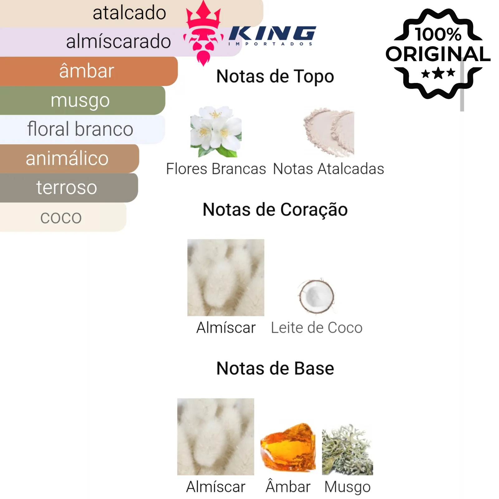 Principais Tipos de Aroma: Atalcado, Floral, Oriental, Cremoso, Almiscarado