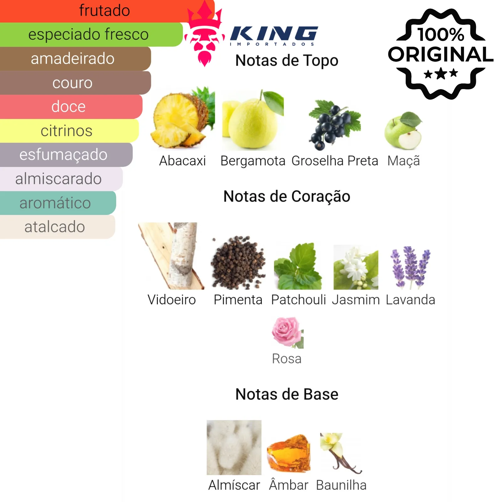 Notas de Topo: Abacaxi 🍍, Bergamota 🍋, Groselha Preta 🍇, Maçã 🍎