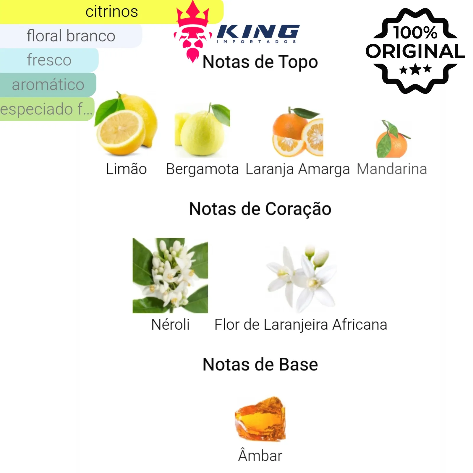 🌿 Topo: Limão, Bergamota, Laranja Amarga, Mandarina
