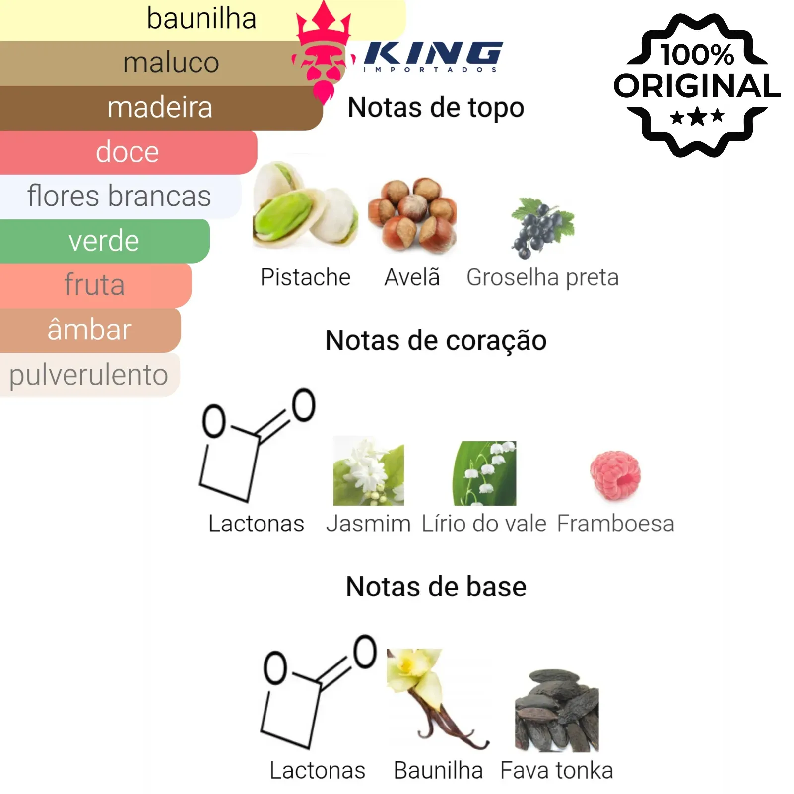 🌳 Base: Lactona, Baunilha, Fava Tonka