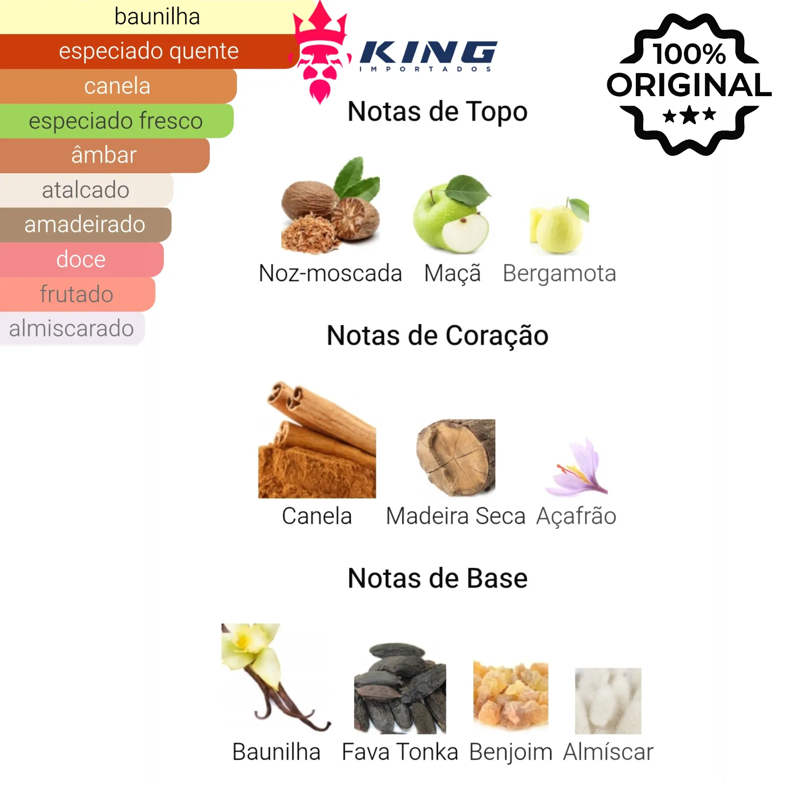 🌸 Coração: Canela, Madeira Seca, Açafrão