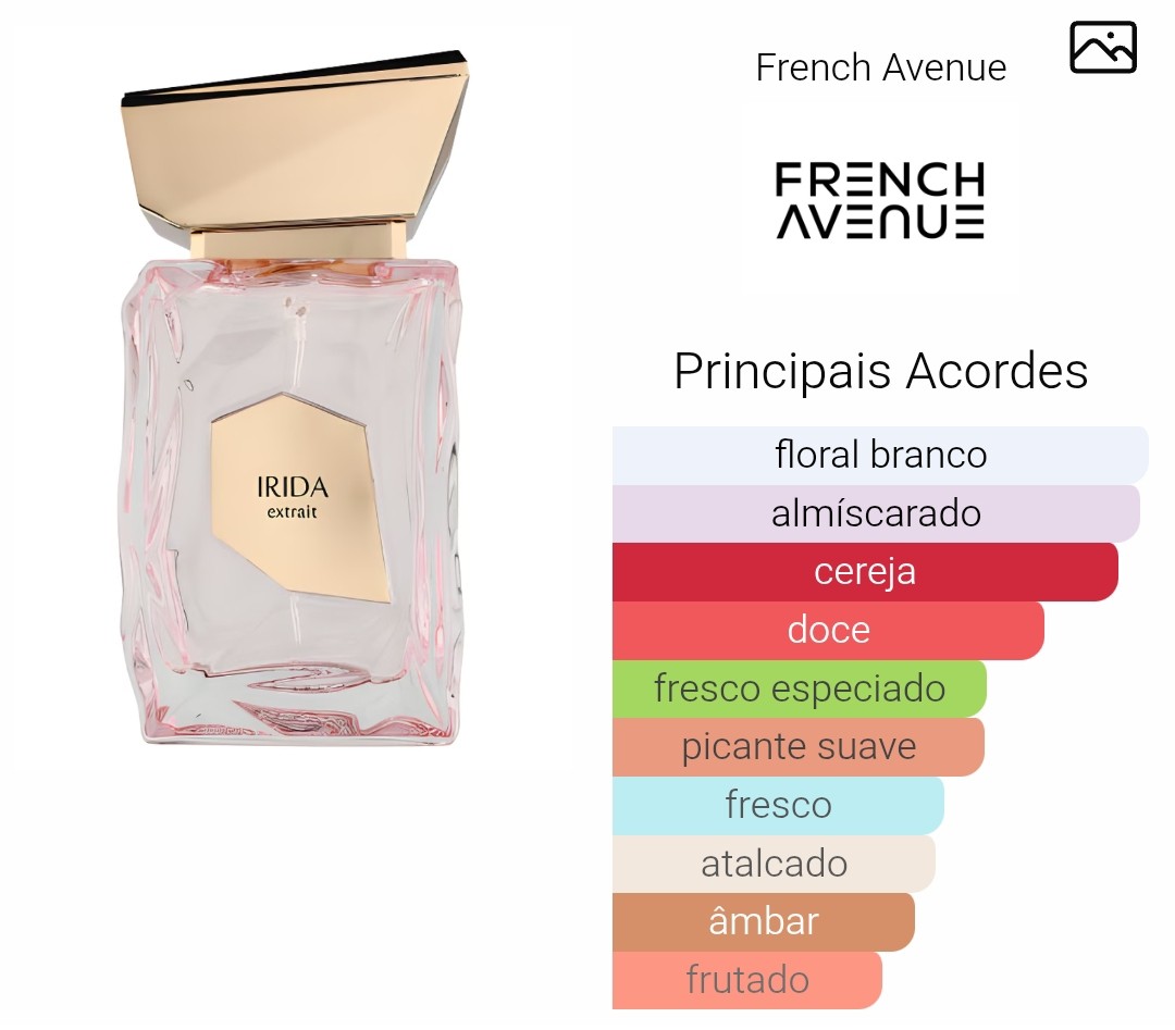 Irida, da French Avenue, é uma fragrância compartilhável lançada em 2024 que equilibra frescor picante, floral elegante e um fundo quente e envolvente. Uma composição moderna e versátil, ideal para quem busca um perfume marcante sem excessos.
