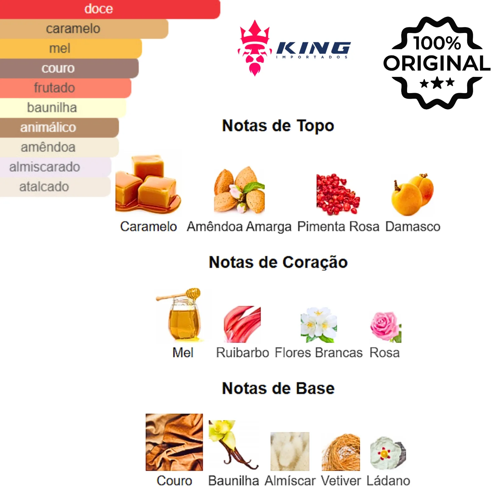 Notas de Topo: Caramelo 🍮, Amêndoa Amarga 🌰, Damasco 🍑, Pimenta Rosa 🌶️