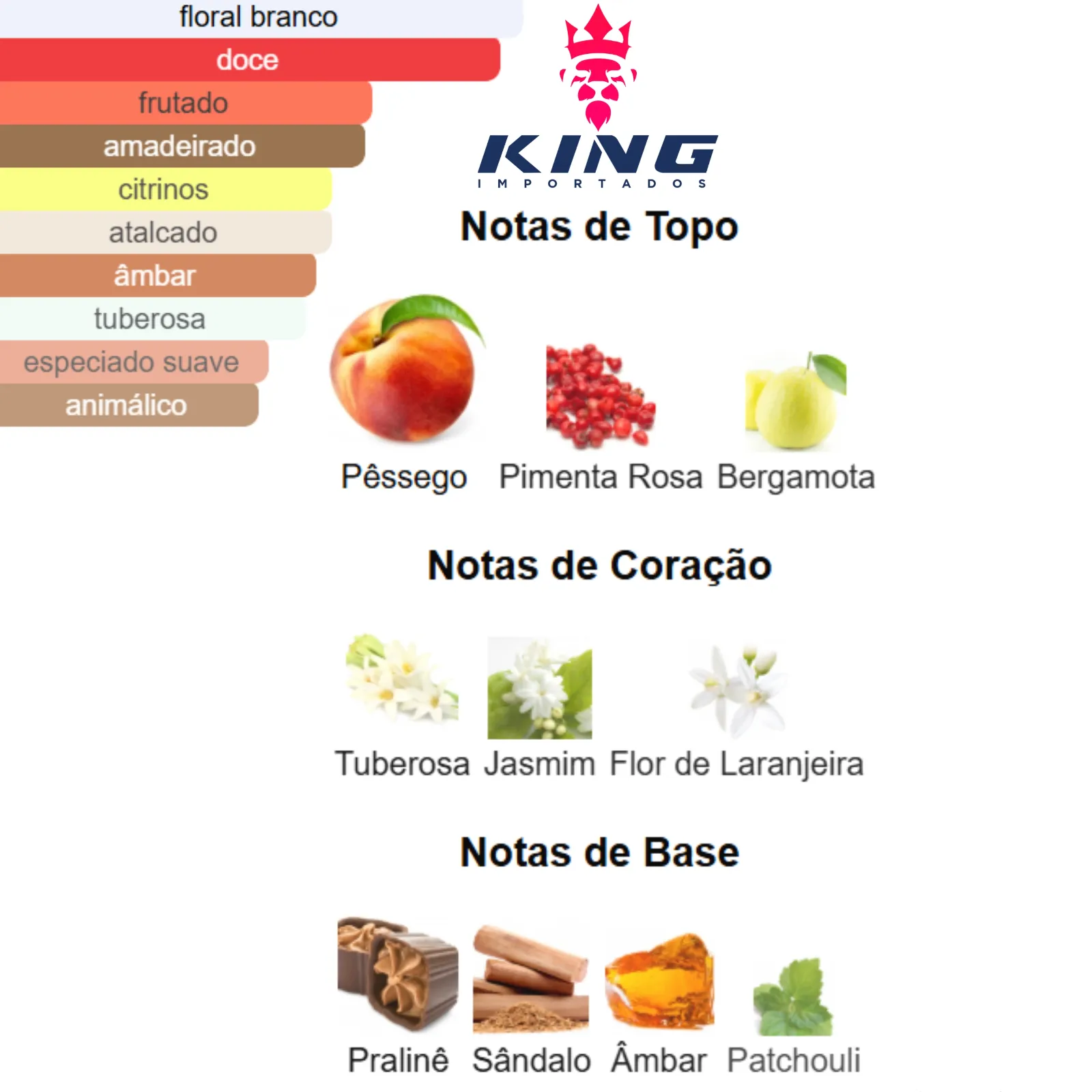 Notas de Topo: Pêssego 🍑, Pimenta Rosa 🌶️, Bergamota 🍊