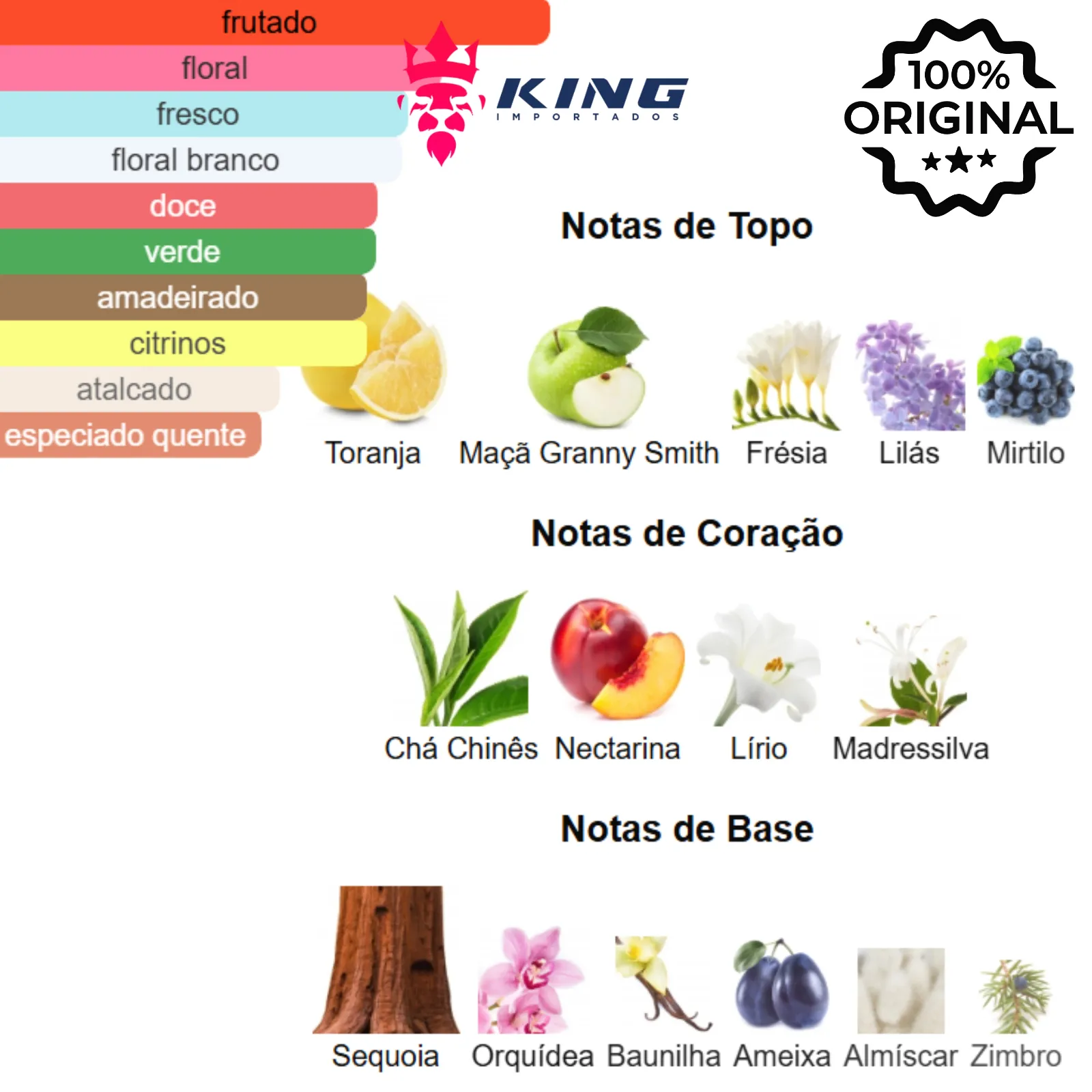 Notas de Coração: Chá Chinês 🍵, Nectarina 🍑, Lírio 🌼, Madressilva