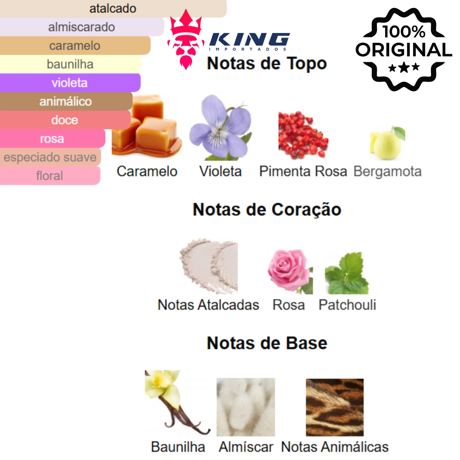 Notas de Topo: Caramelo 🍬, Violeta 💜, Pimenta Rosa 🌶️, Bergamota 🍋