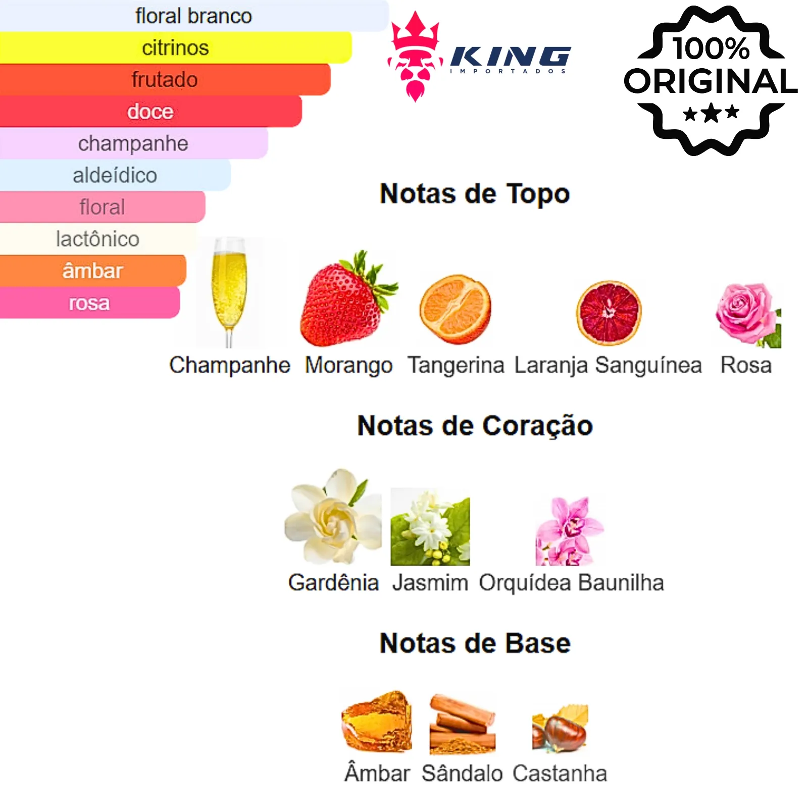 Notas de Topo: Champanhe , Morango , Tangerina 🍊, Laranja Sanguínea , Rosa 🌹
