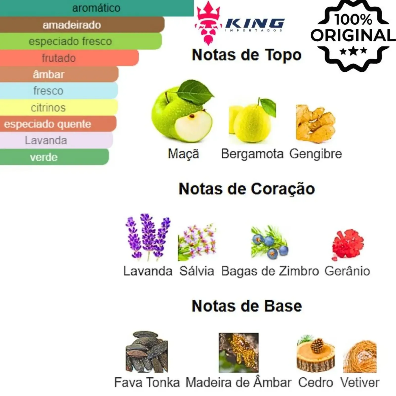 Notas de Coração: Lavanda 🌸, Sálvia 🌿, Bagas de Zimbro [Bagas de Zimbro], Gerânio
