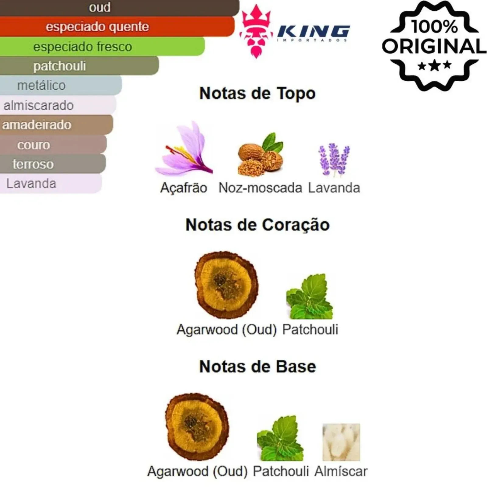 Notas de Coração: Agarwood (Oud) 🪵, Patchouli 🌿