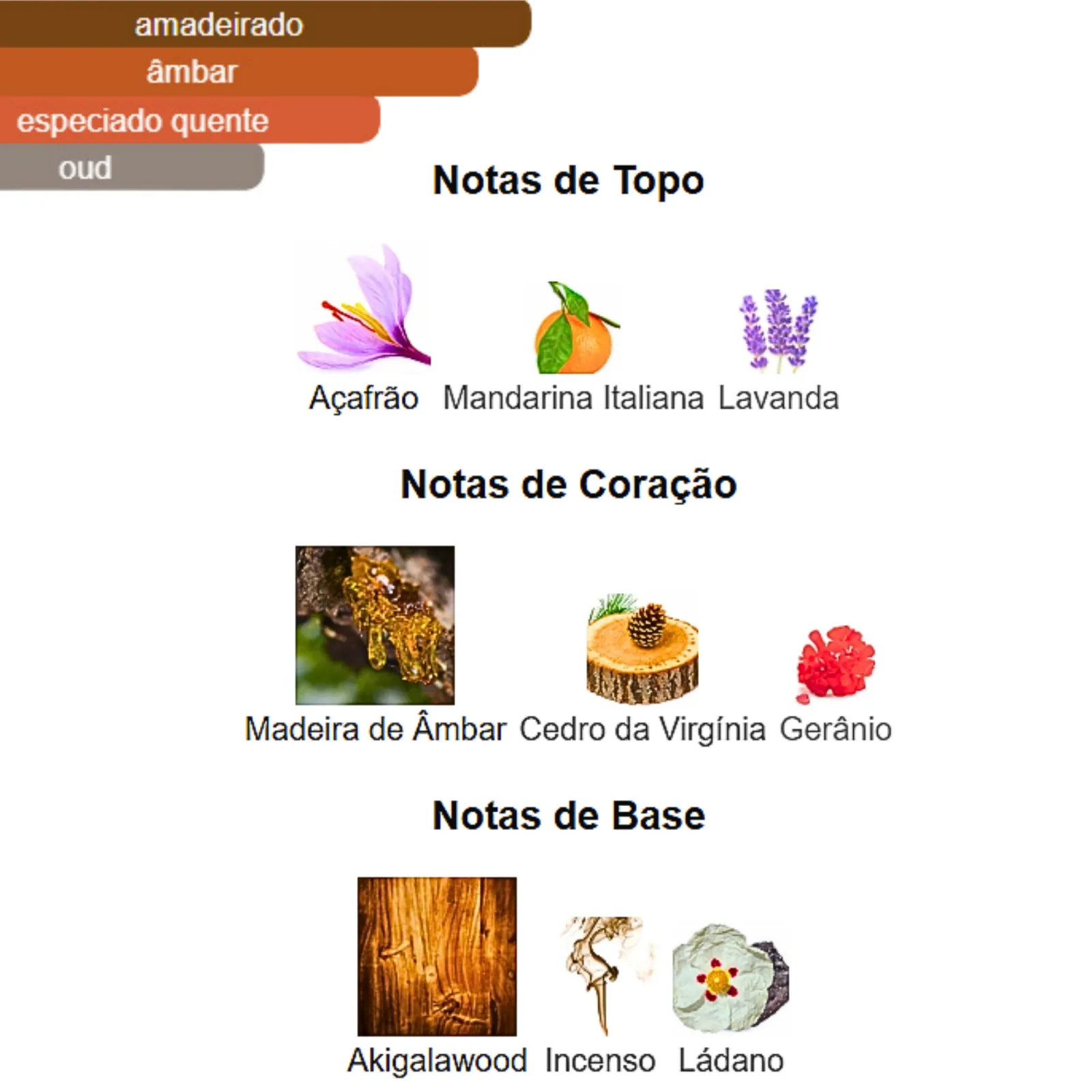 Notas de Coração: [Madeira de Âmbar], 🌳 Cedro da Virgínia, 🌺 Gerânio