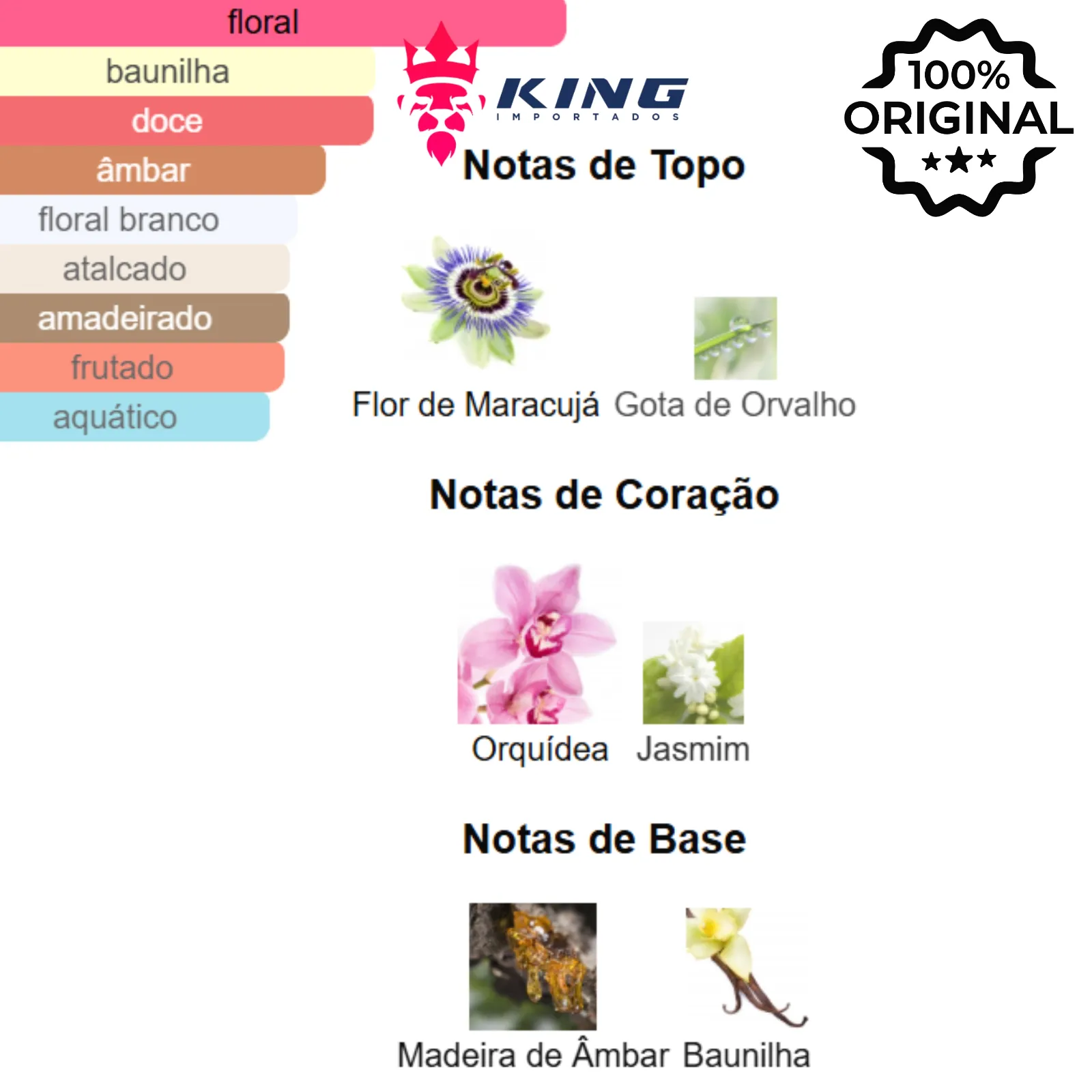 Notas de Coração: 🌸 Orquídea, 🌸 Jasmim