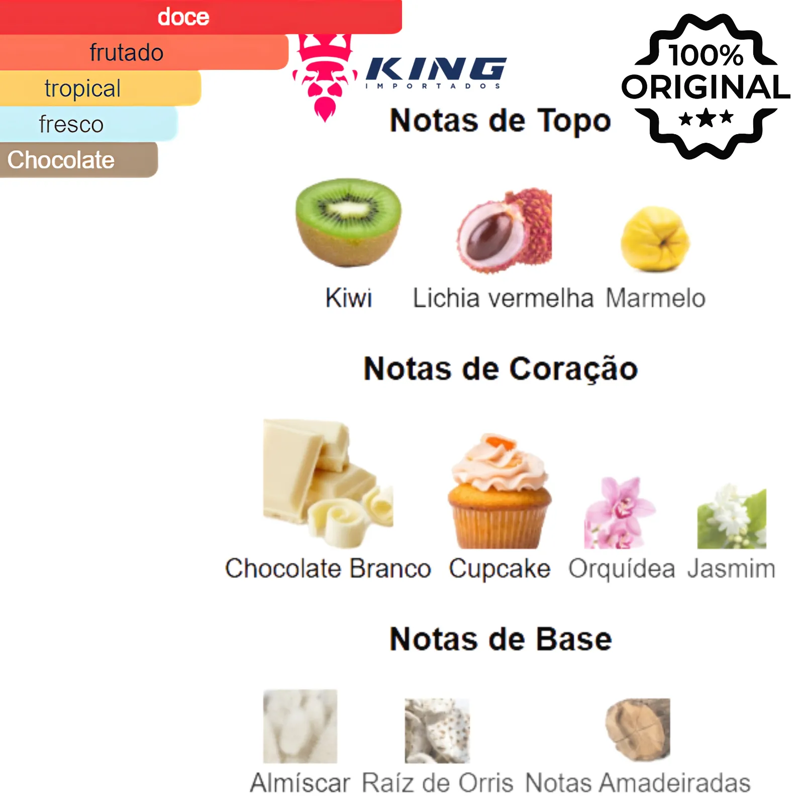 Notas de Topo: 🥝 Kiwi, 🍓 Lichia vermelha, [Marmelo]