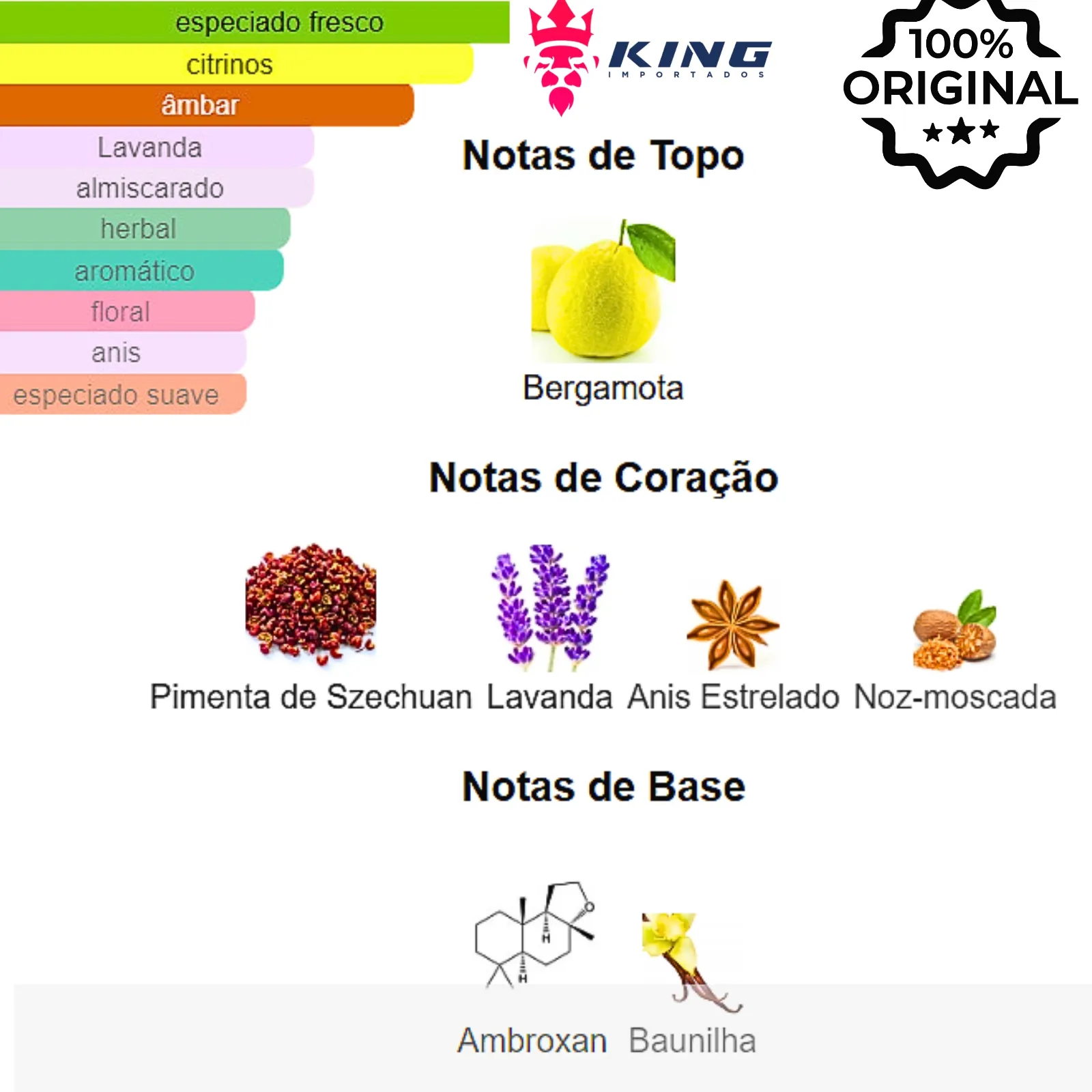 Notas de Coração: [Lavanda], [Pimenta de Szechuan], [Anis Estrelado], [Noz-moscada]